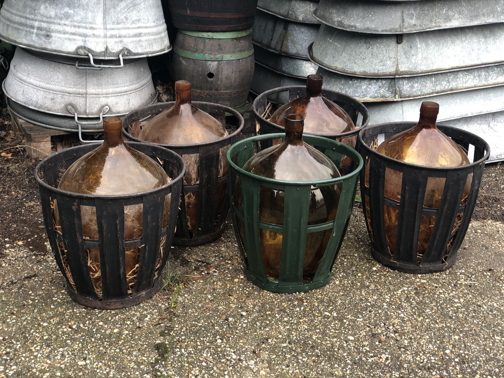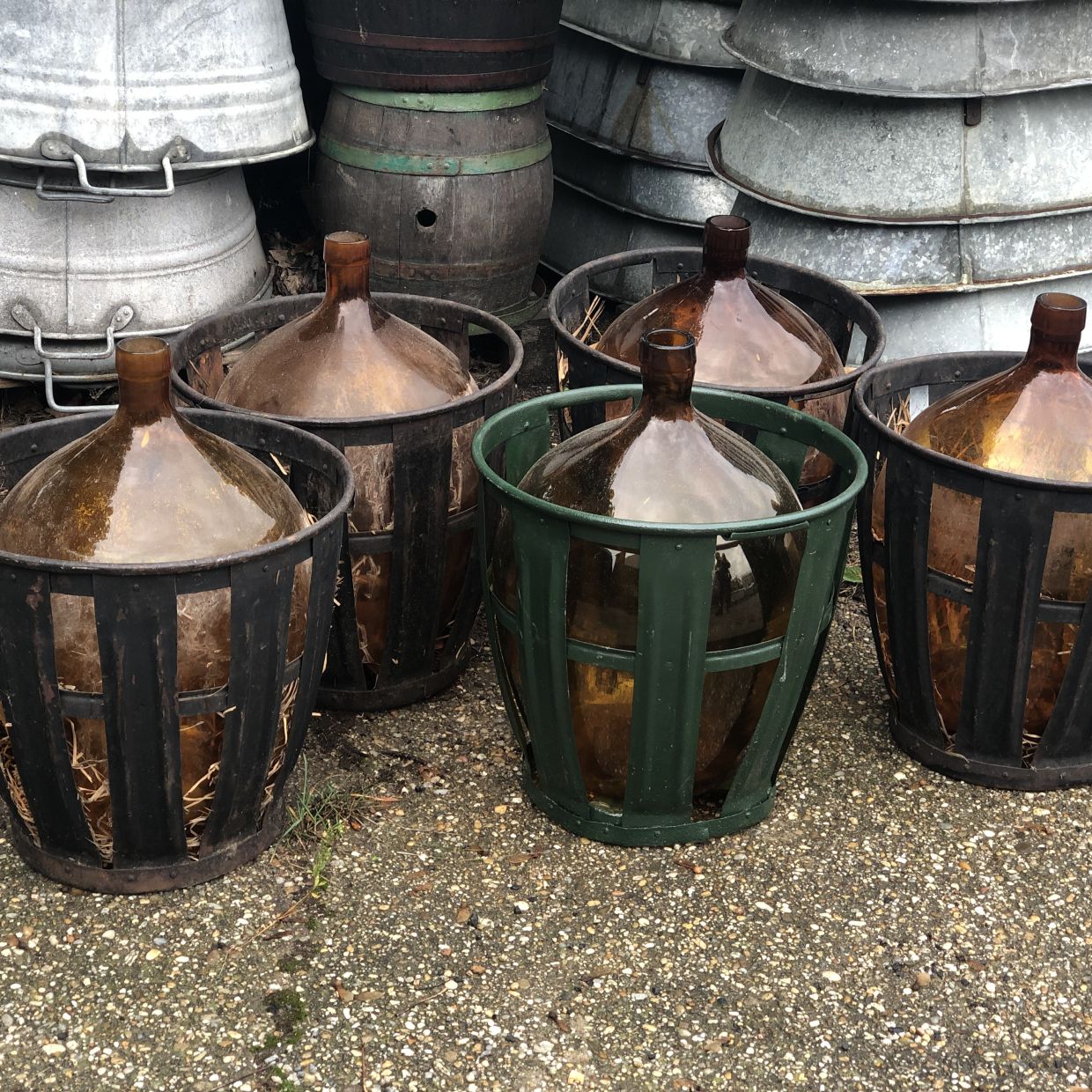 Ballonüvegek fém kosárban