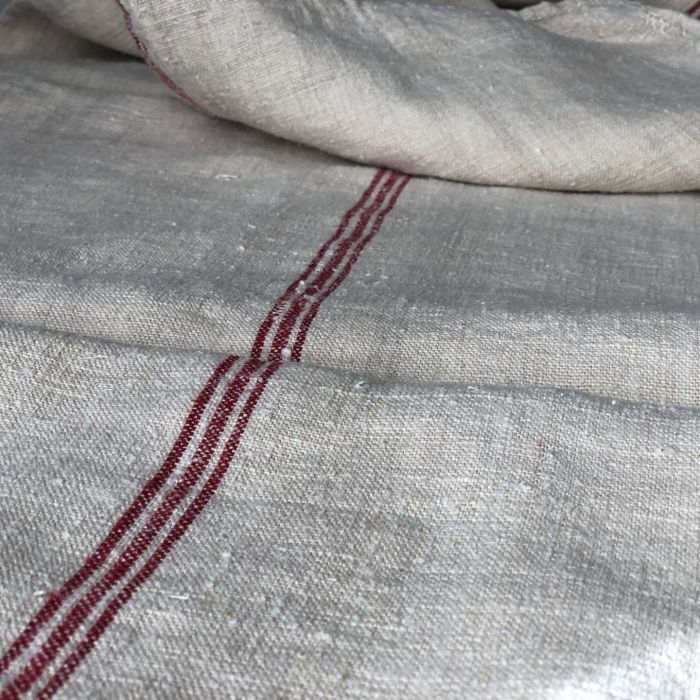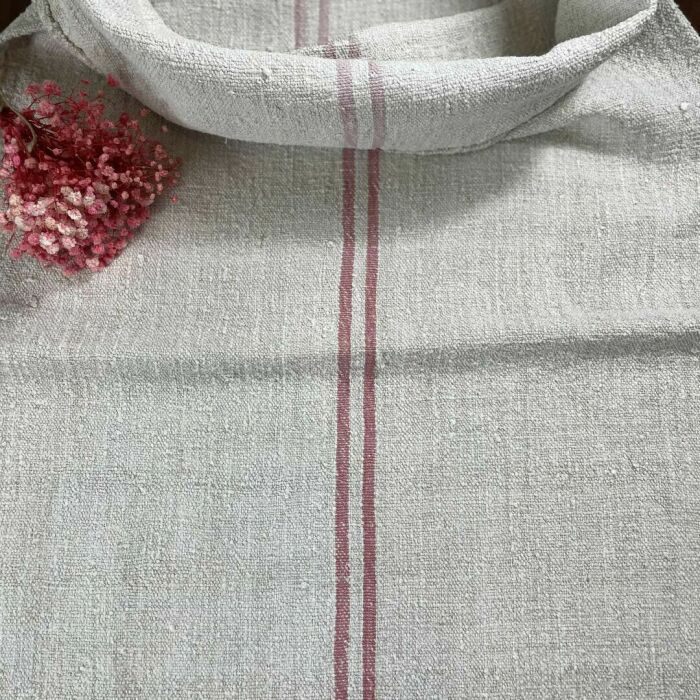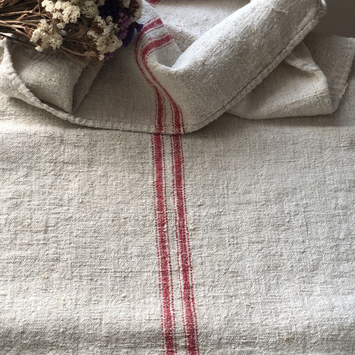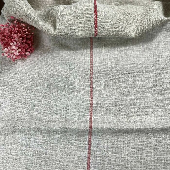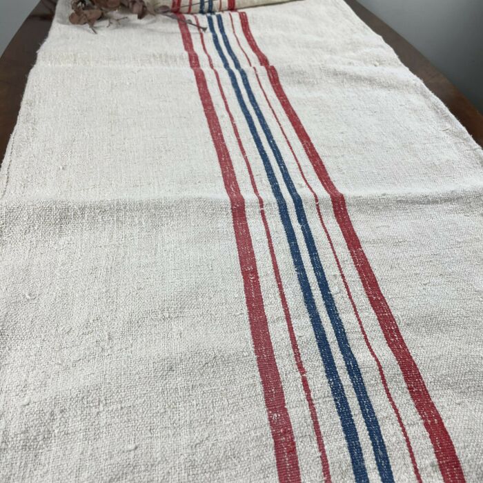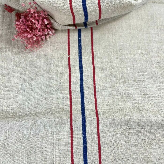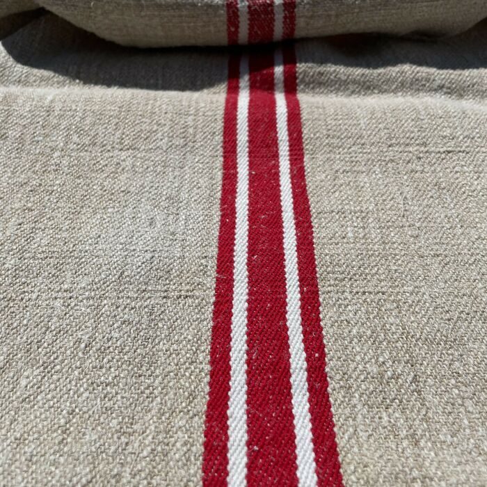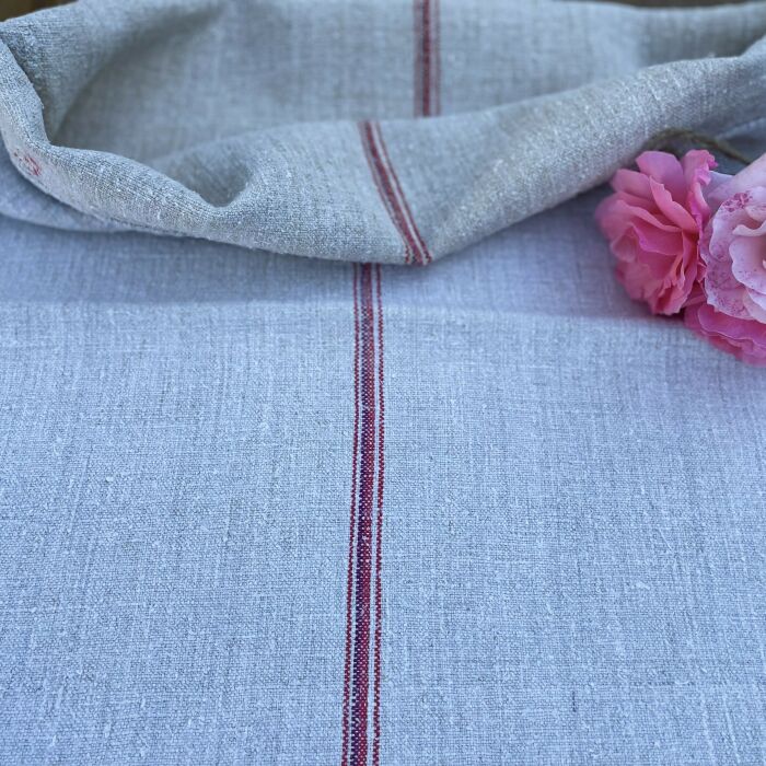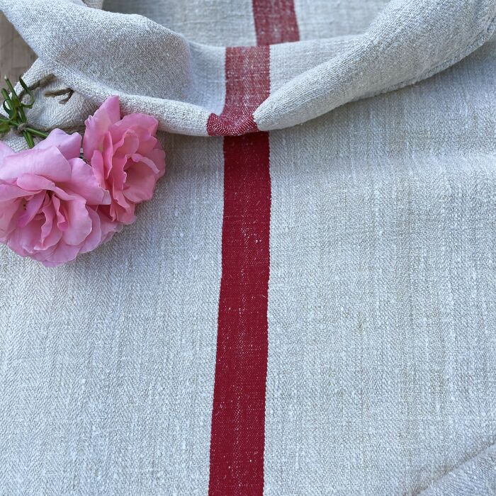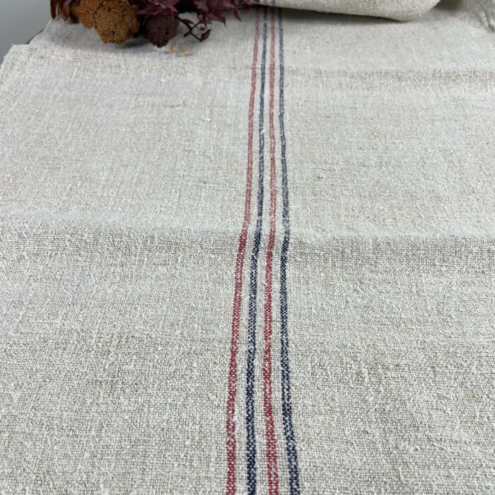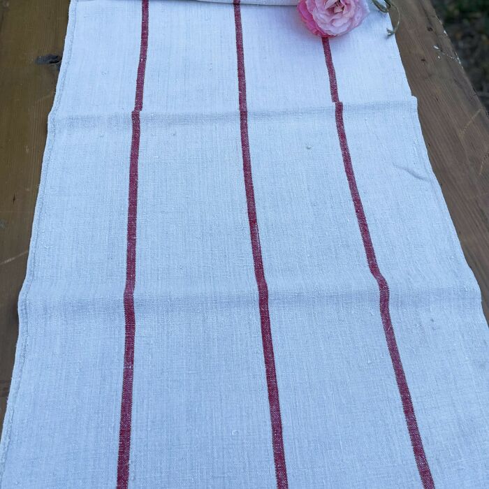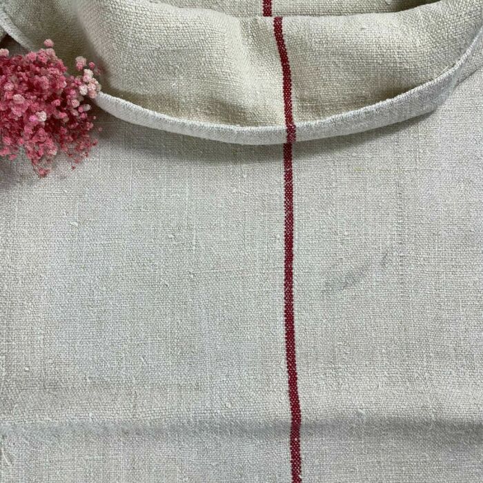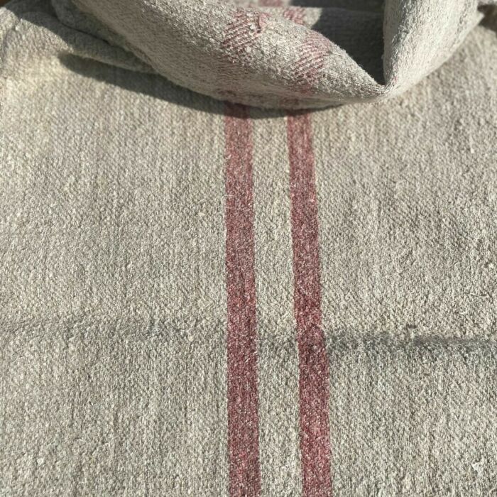 Antik kézzel szőtt vászonzsák piros csíkkal