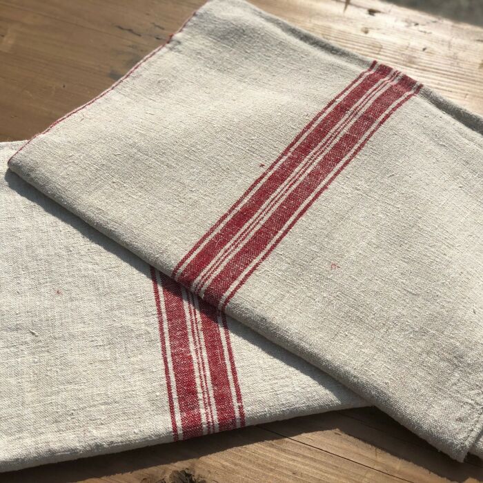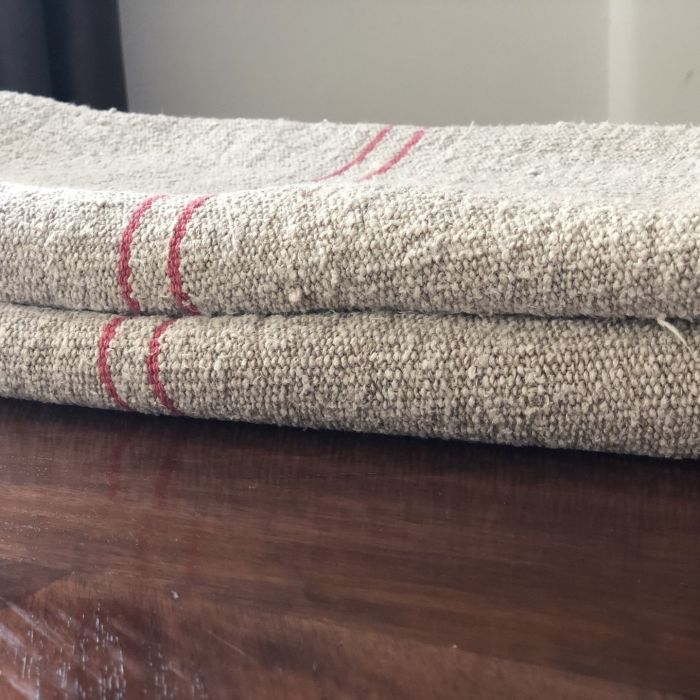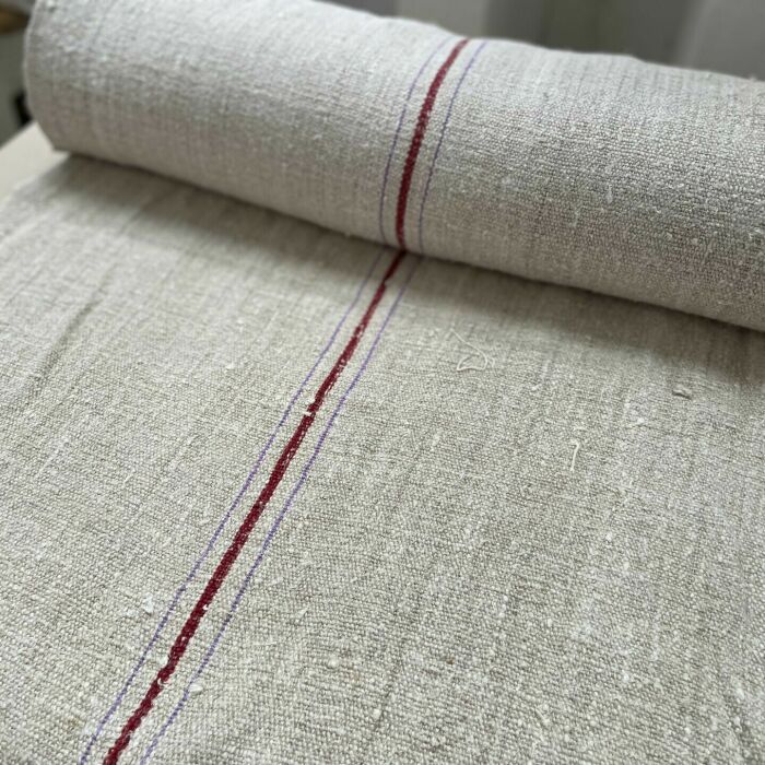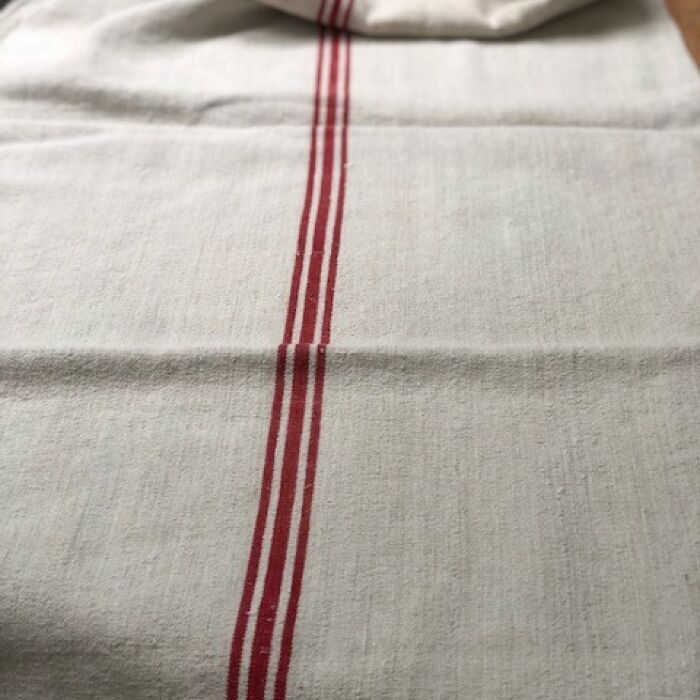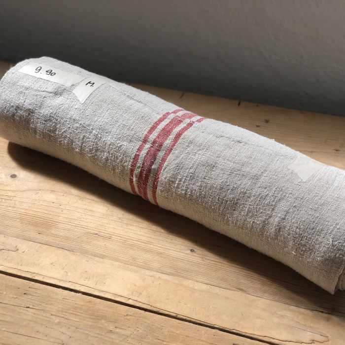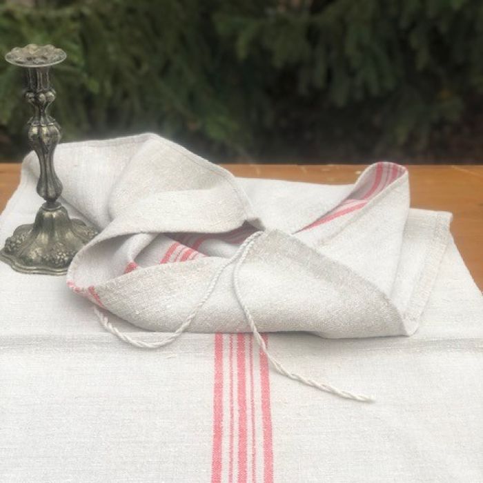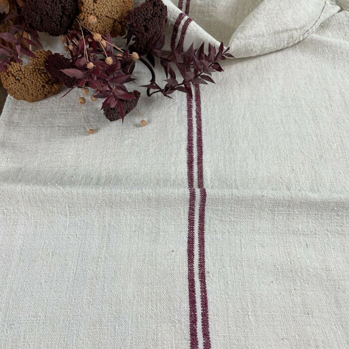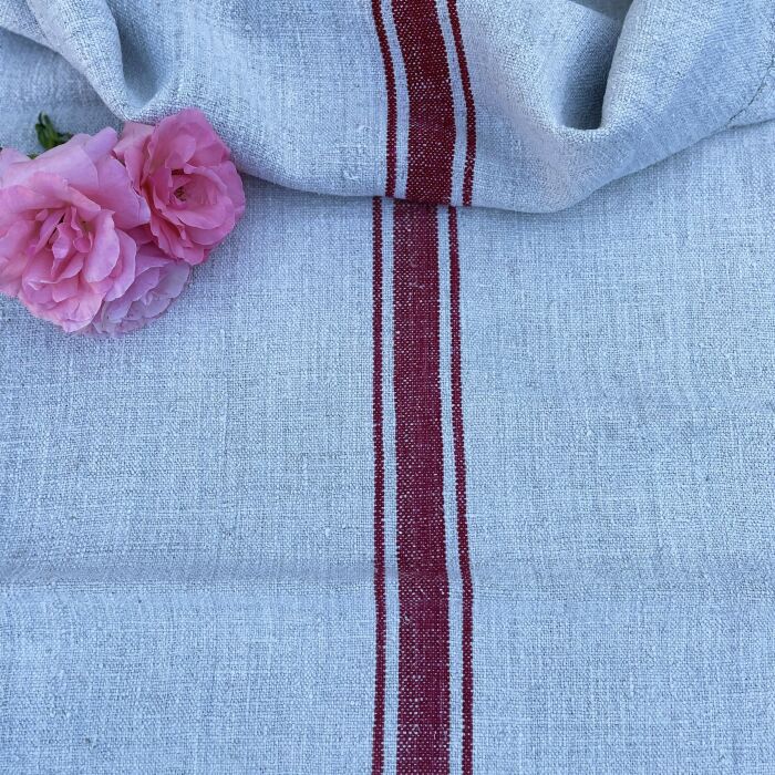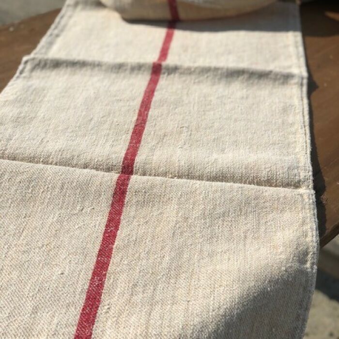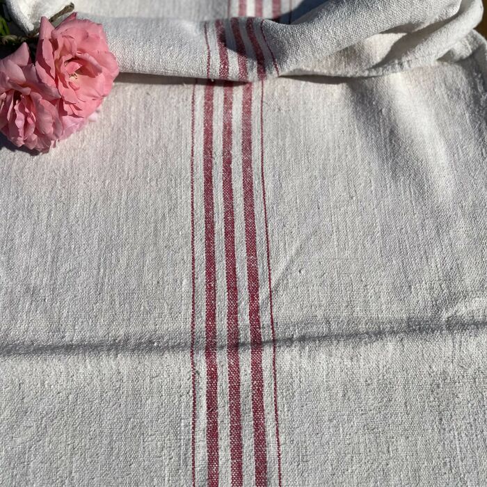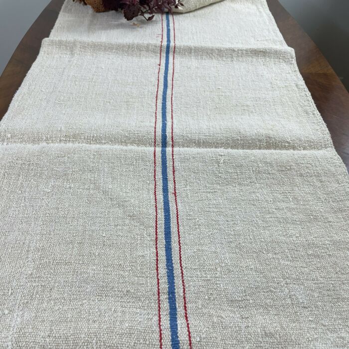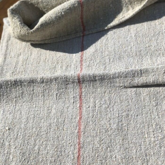 Antik kézzel szőtt vászonzsák piros csíkkal