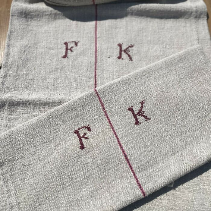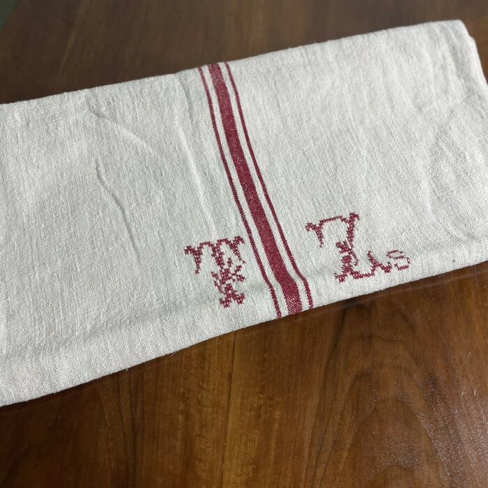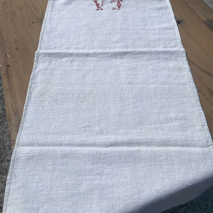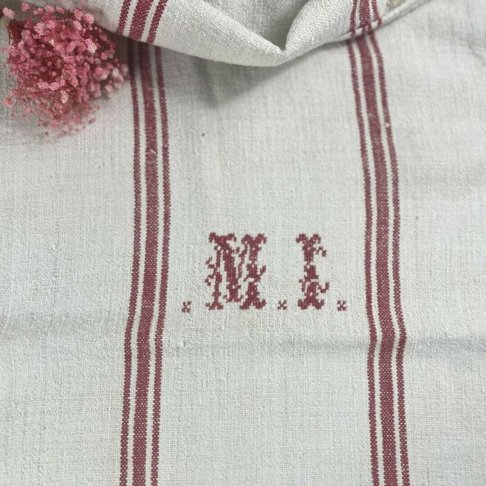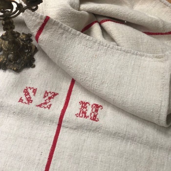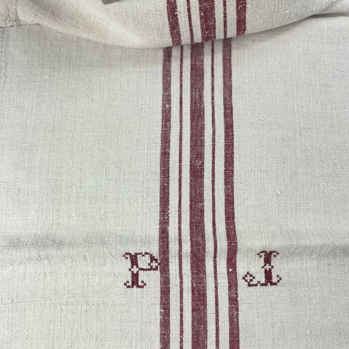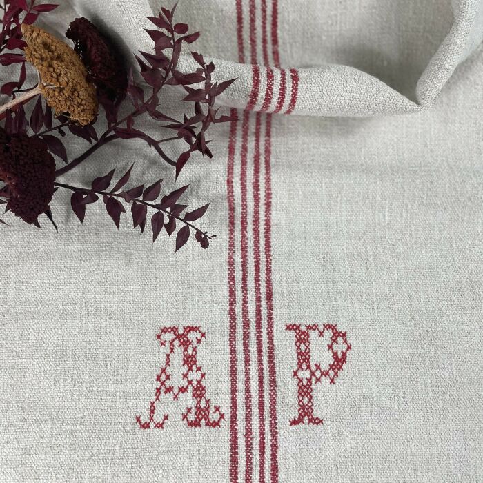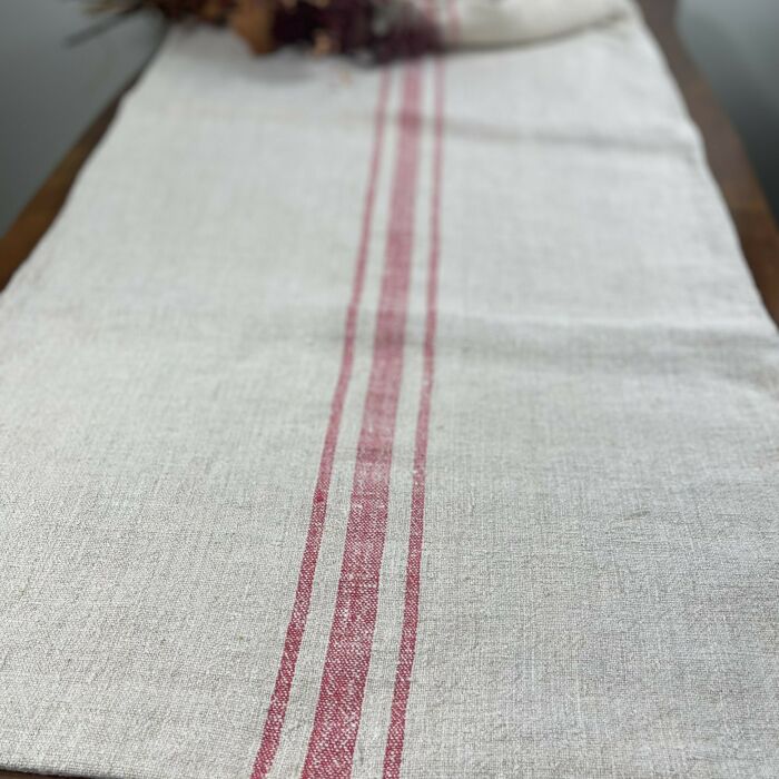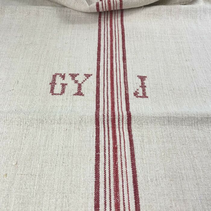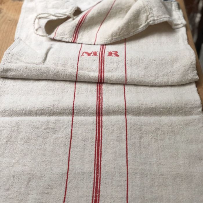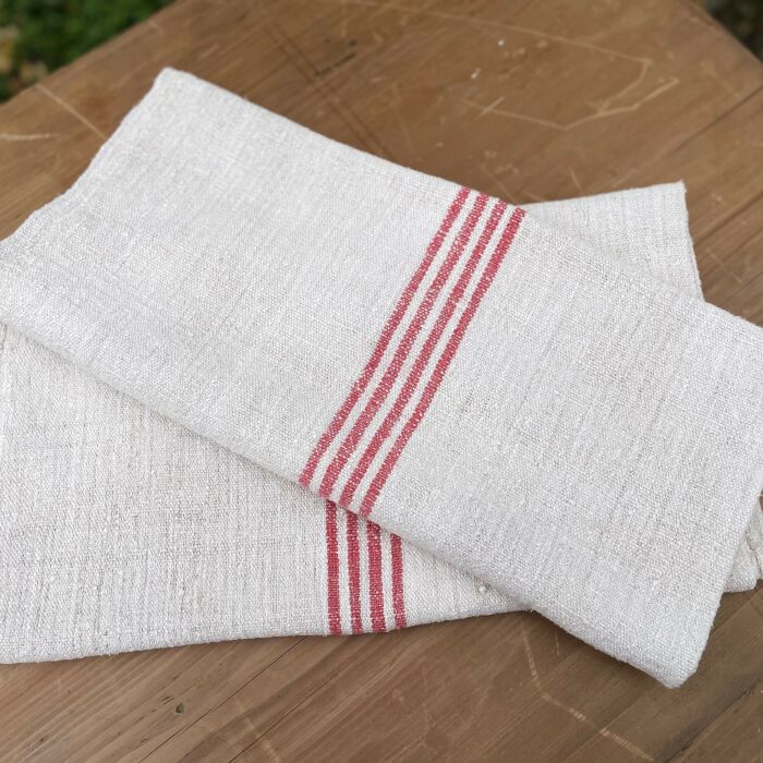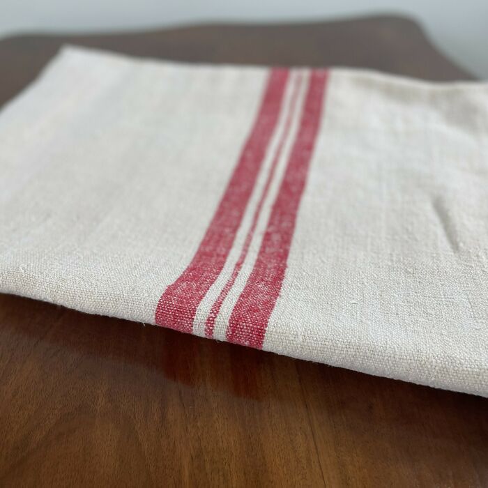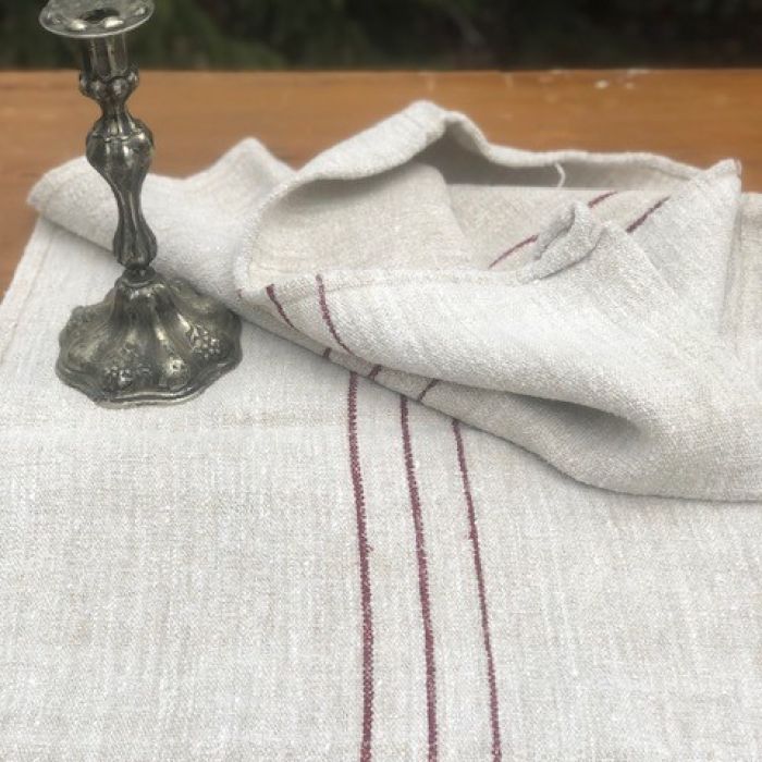 Antik kézzel szőtt vászonzsák piros csíkkal