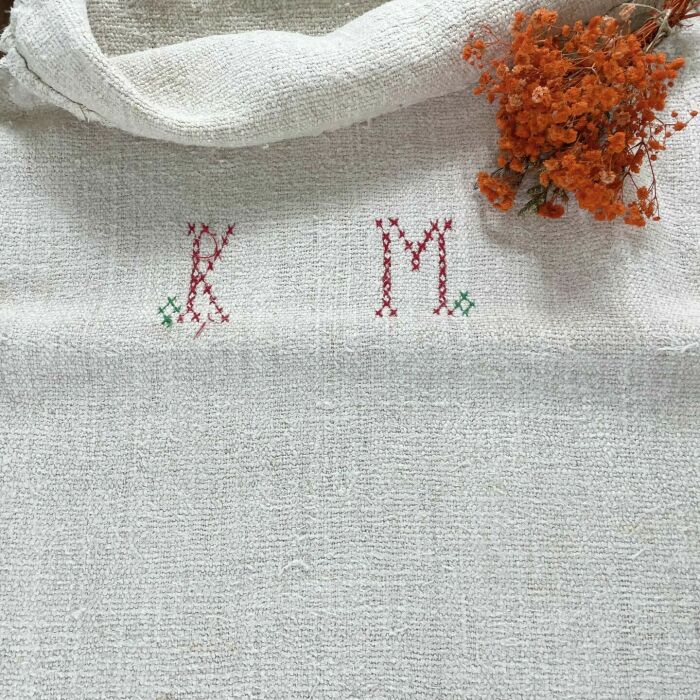 Kézzel hímzett antik vászon zsák