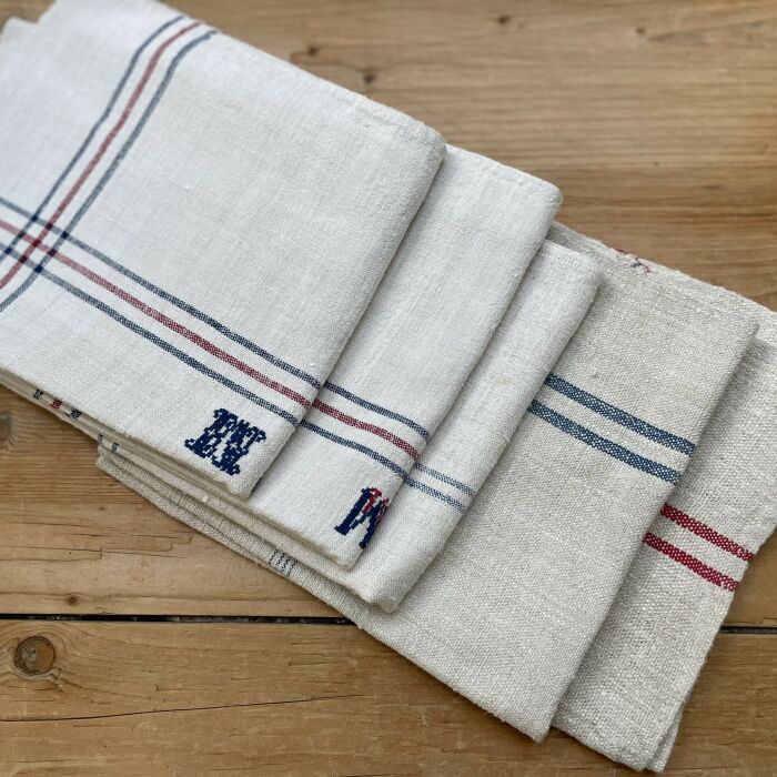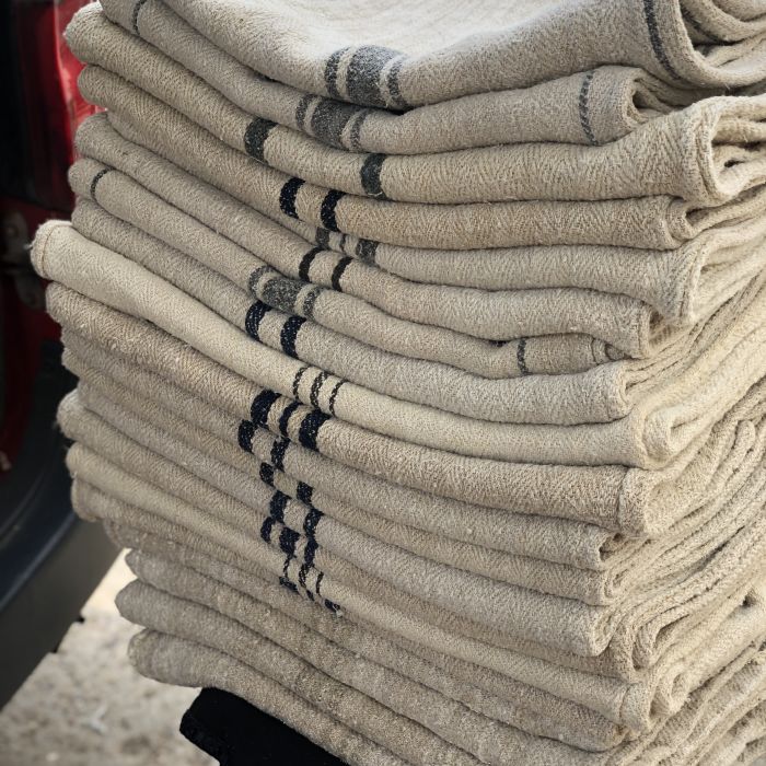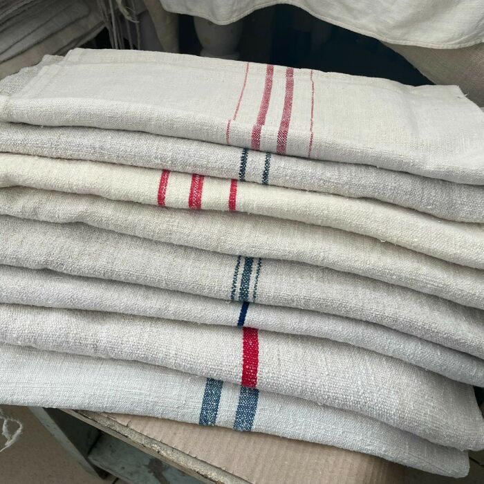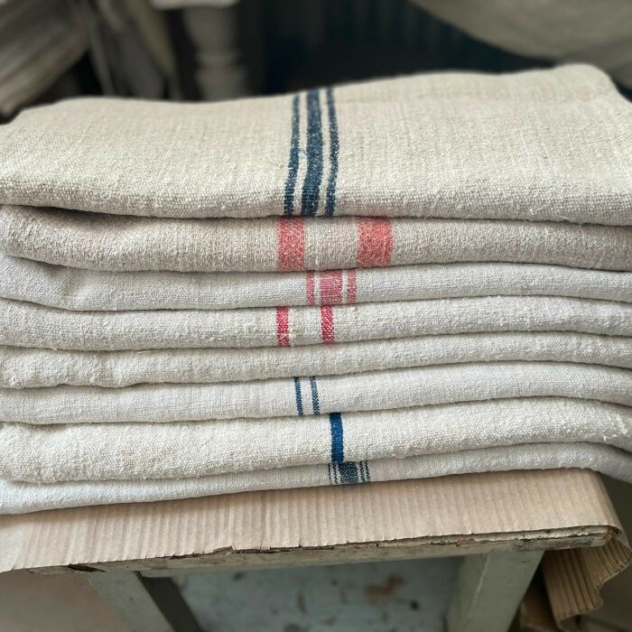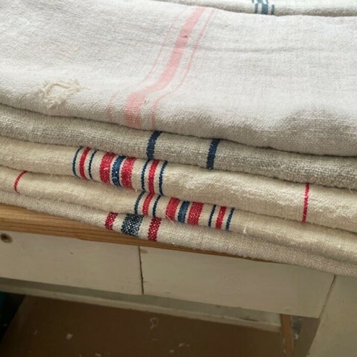 Csíkos antik vászon zsákok otthon dekorációhoz