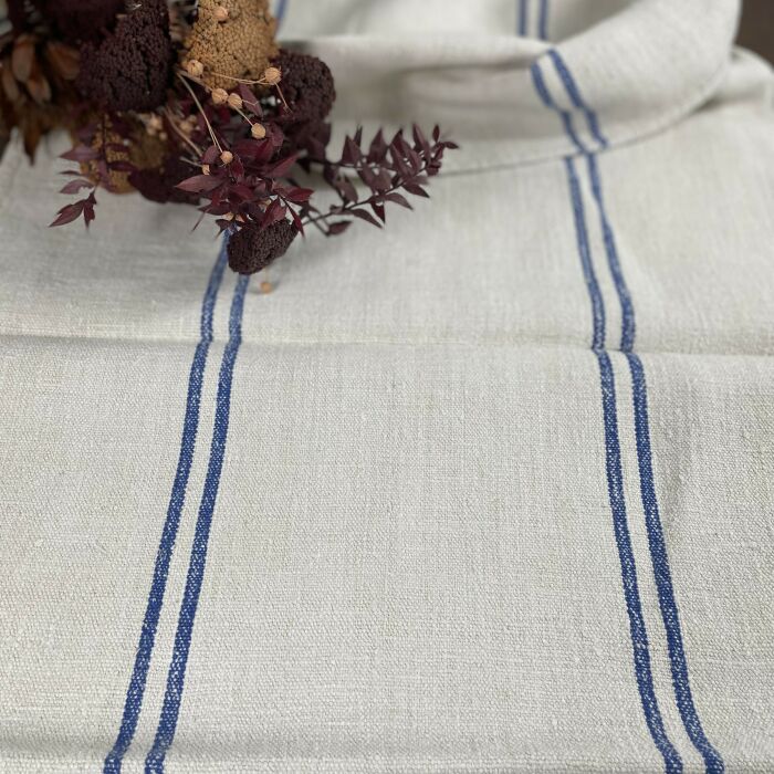 Csíkos lenvászon zsákok a rusztikus eleganciához