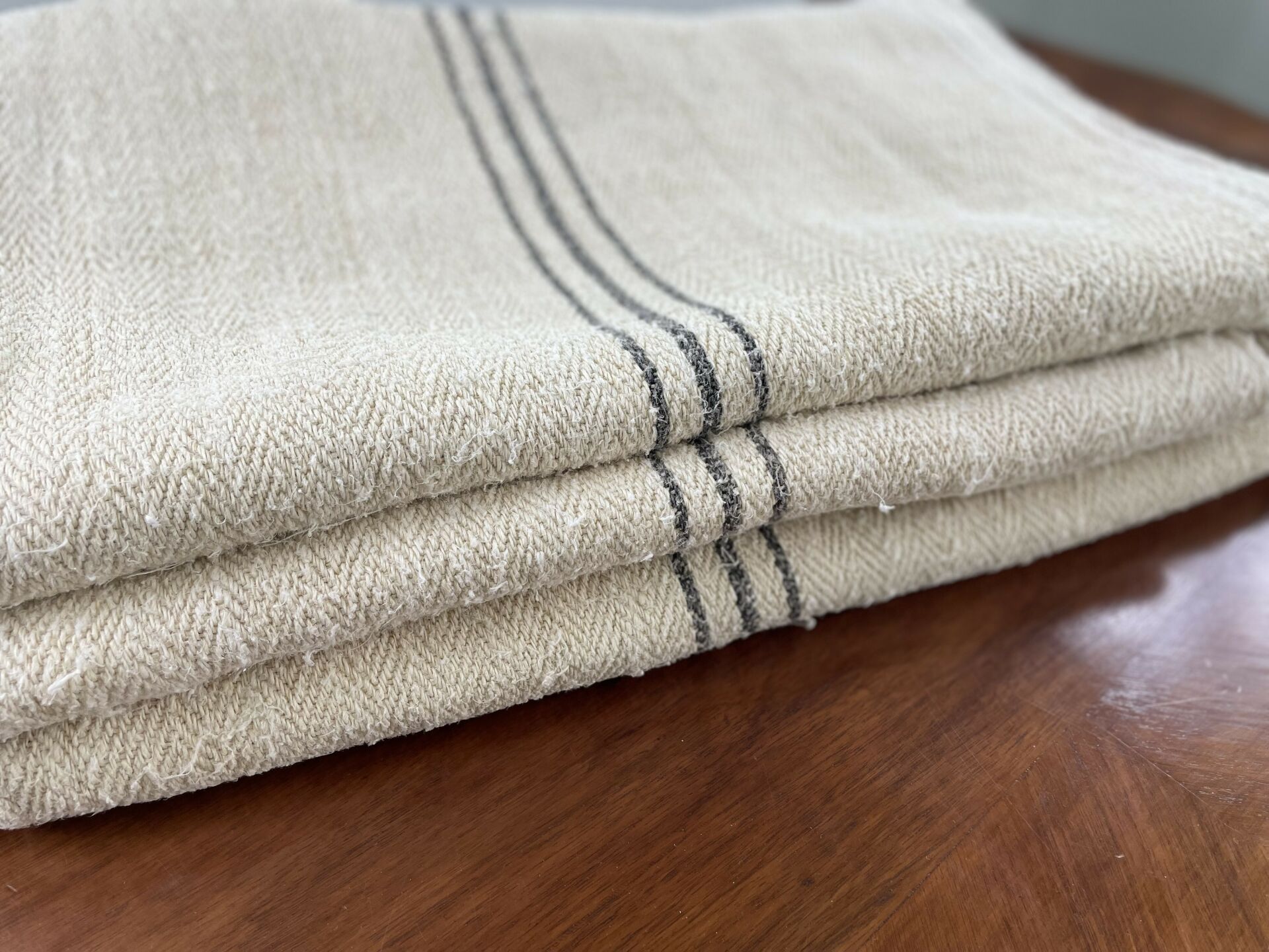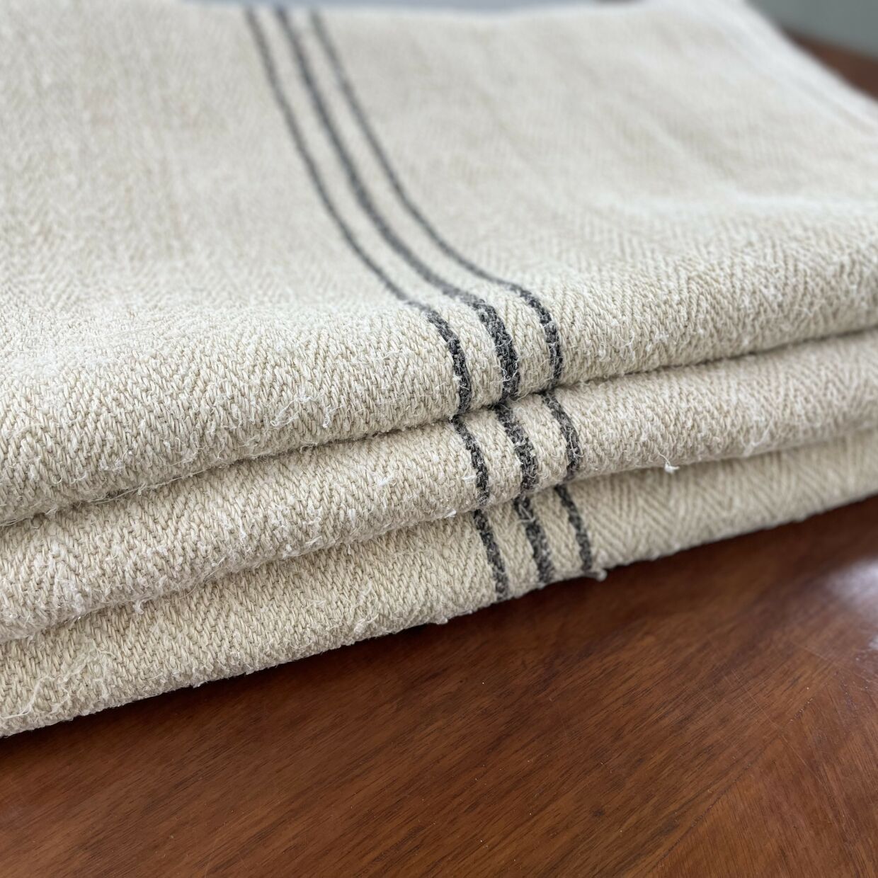 Vászonzsákok kék csíkkal