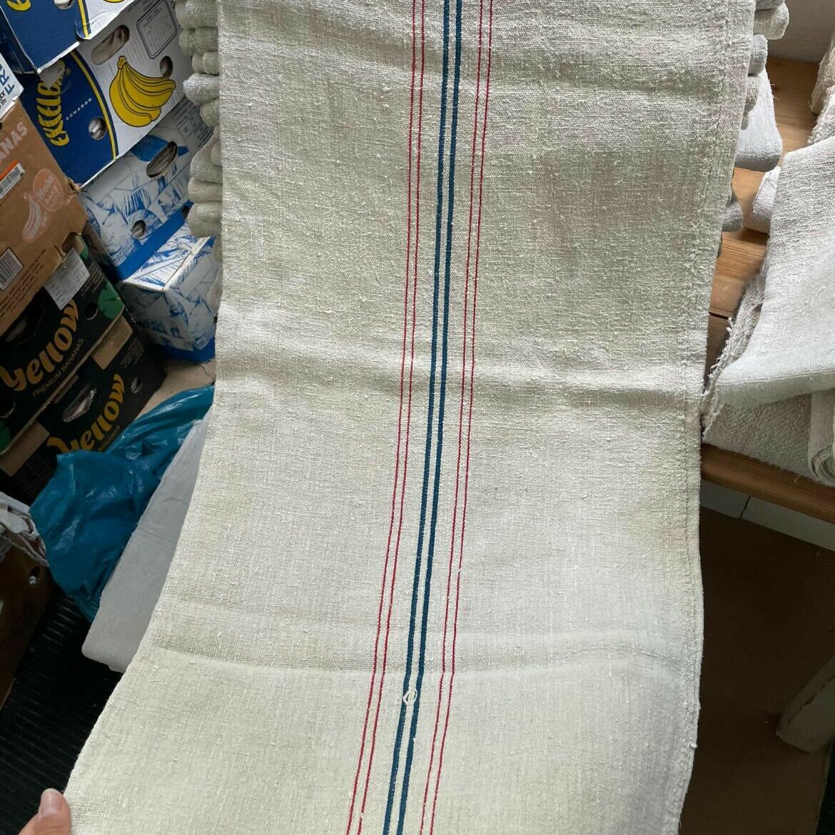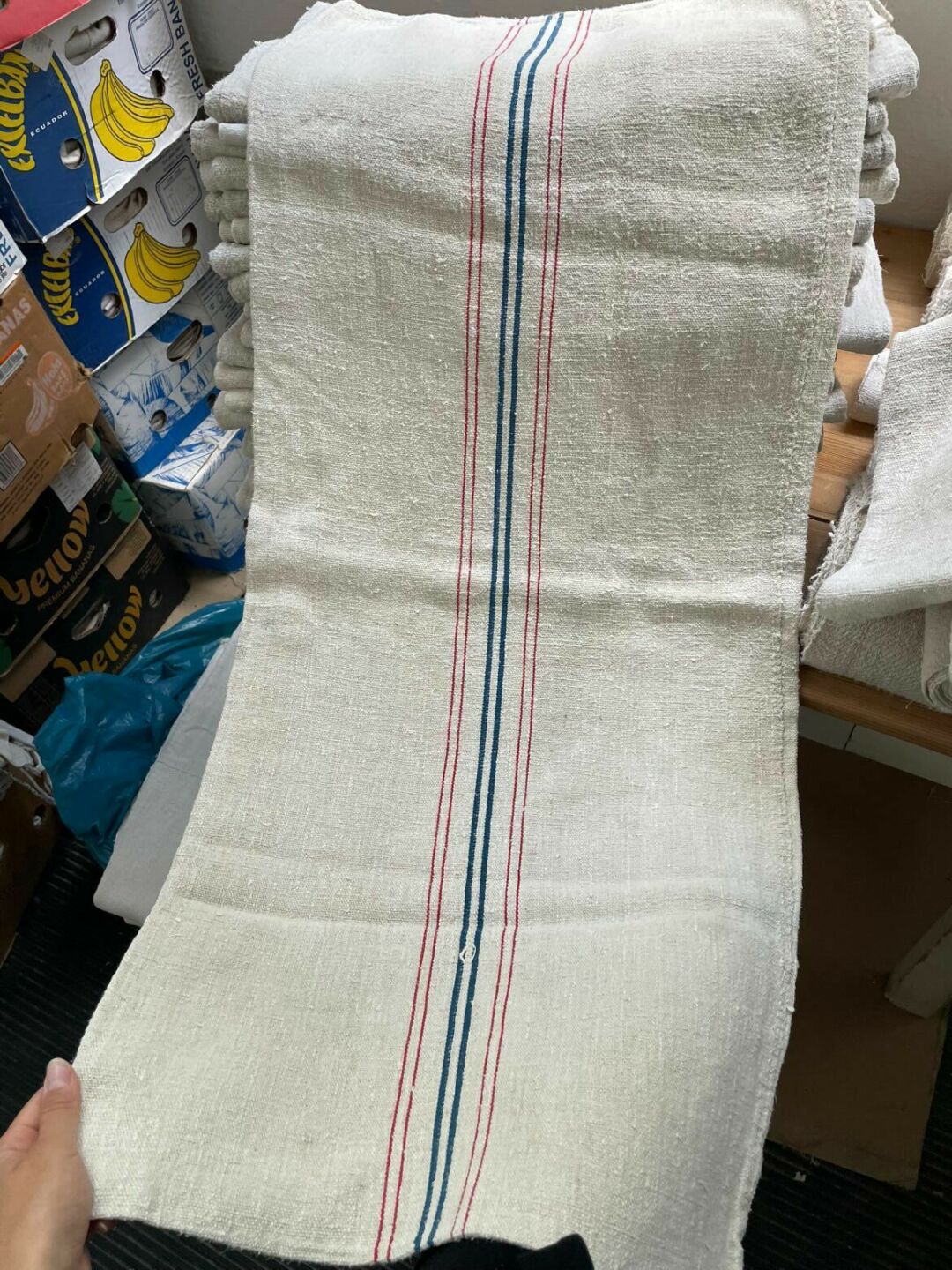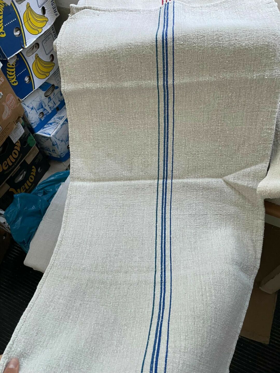 Vászonzsákok kék csíkkal