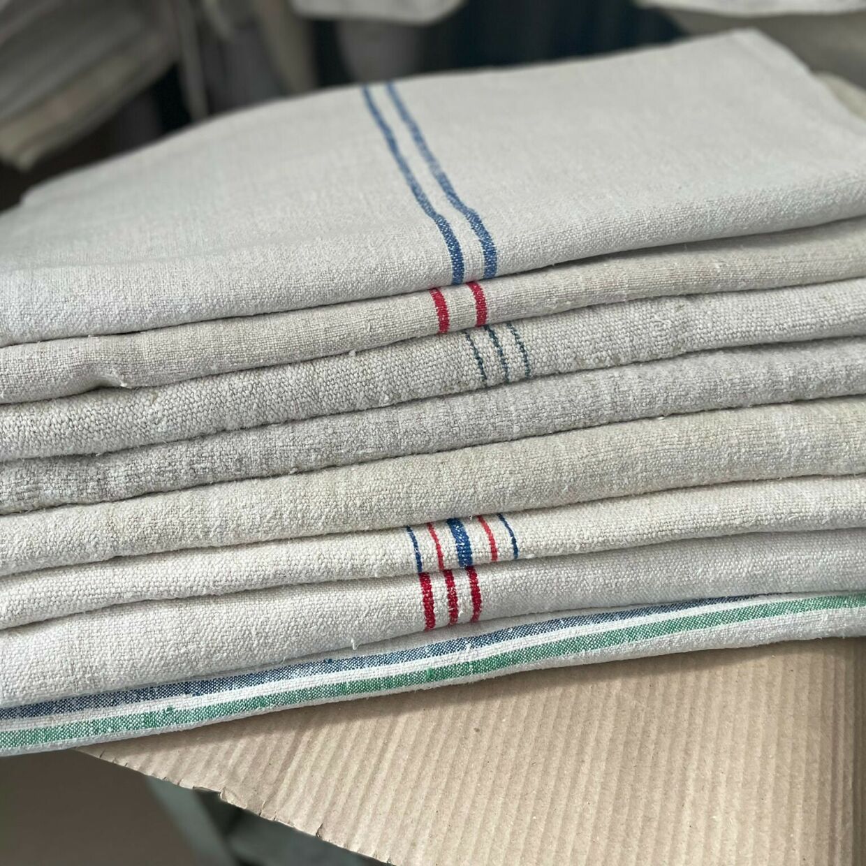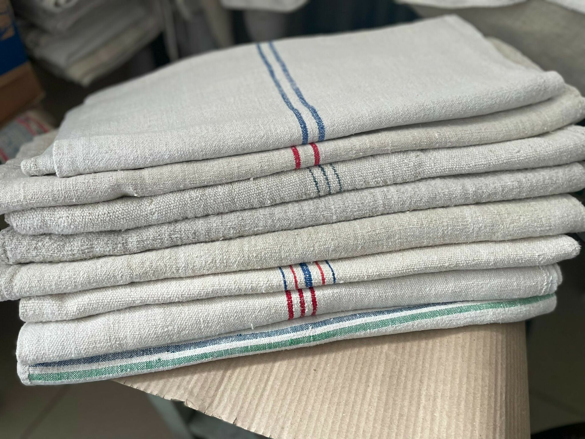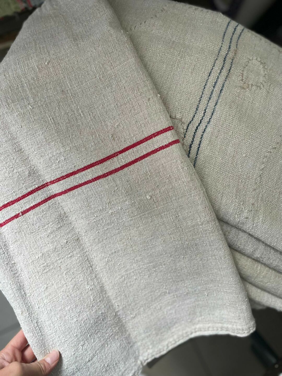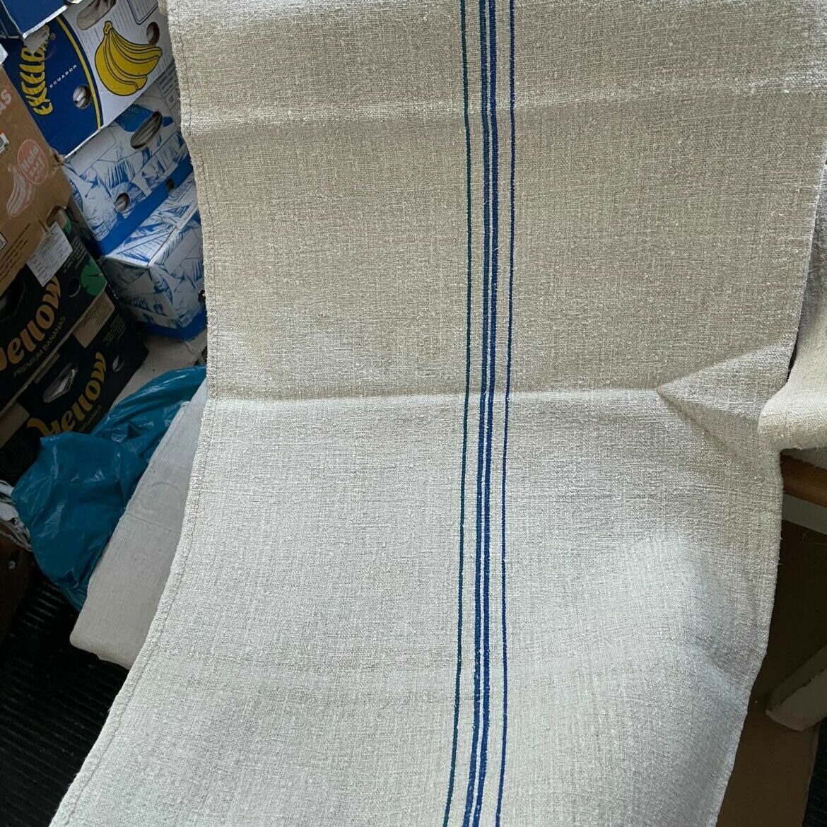 Vászonzsákok kék csíkkal