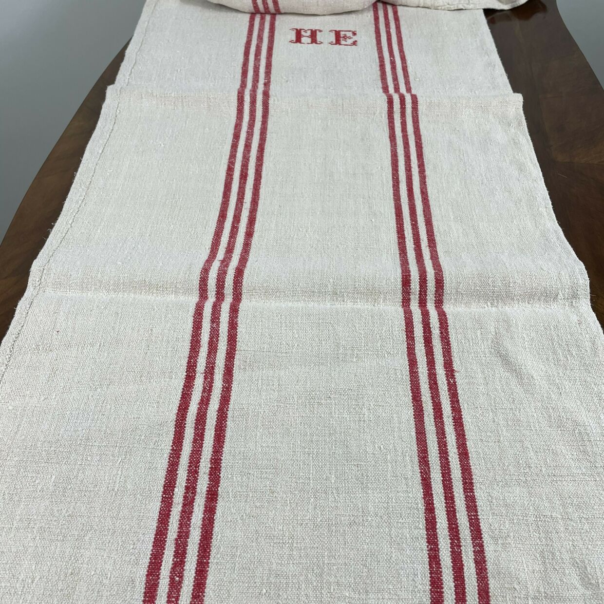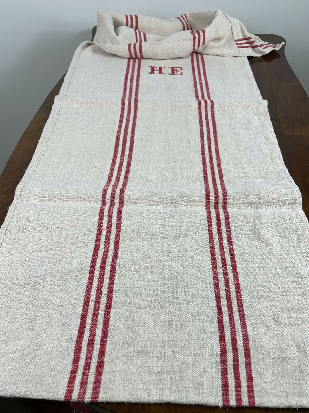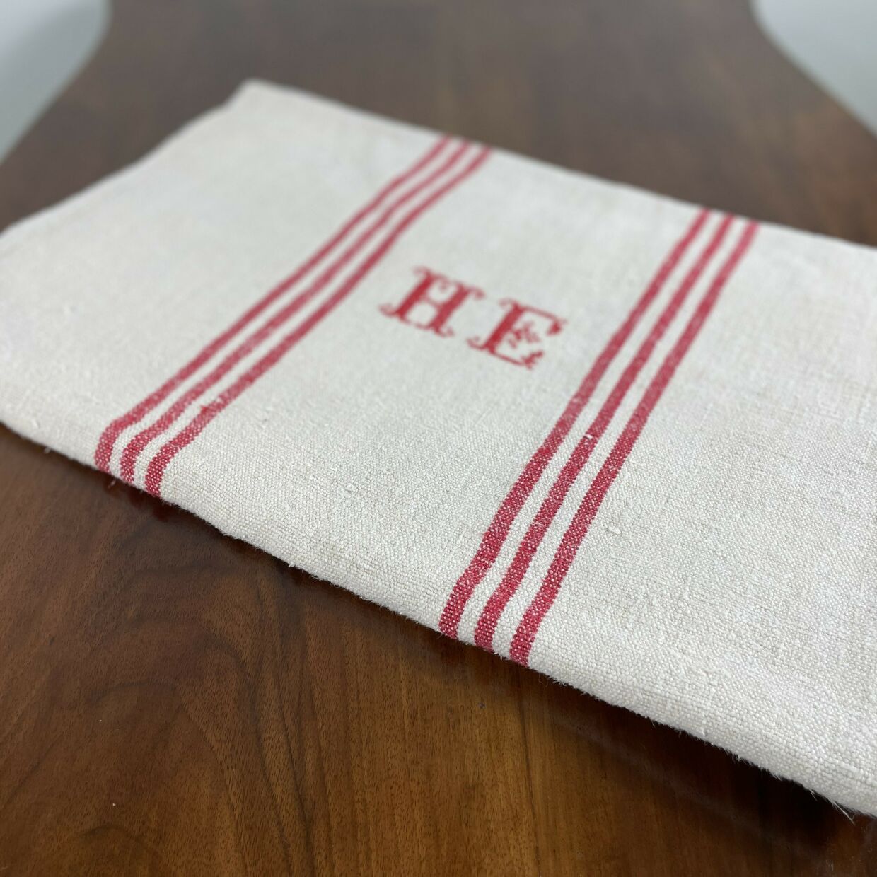 Kézzel szőtt lenvászonból készült zsák, gyönyörű kézzel hímzett monogrammal. Ez a sokoldalú darab ideális kárpitozáshoz, párnákhoz vagy rusztikus lakás dekorációhoz.