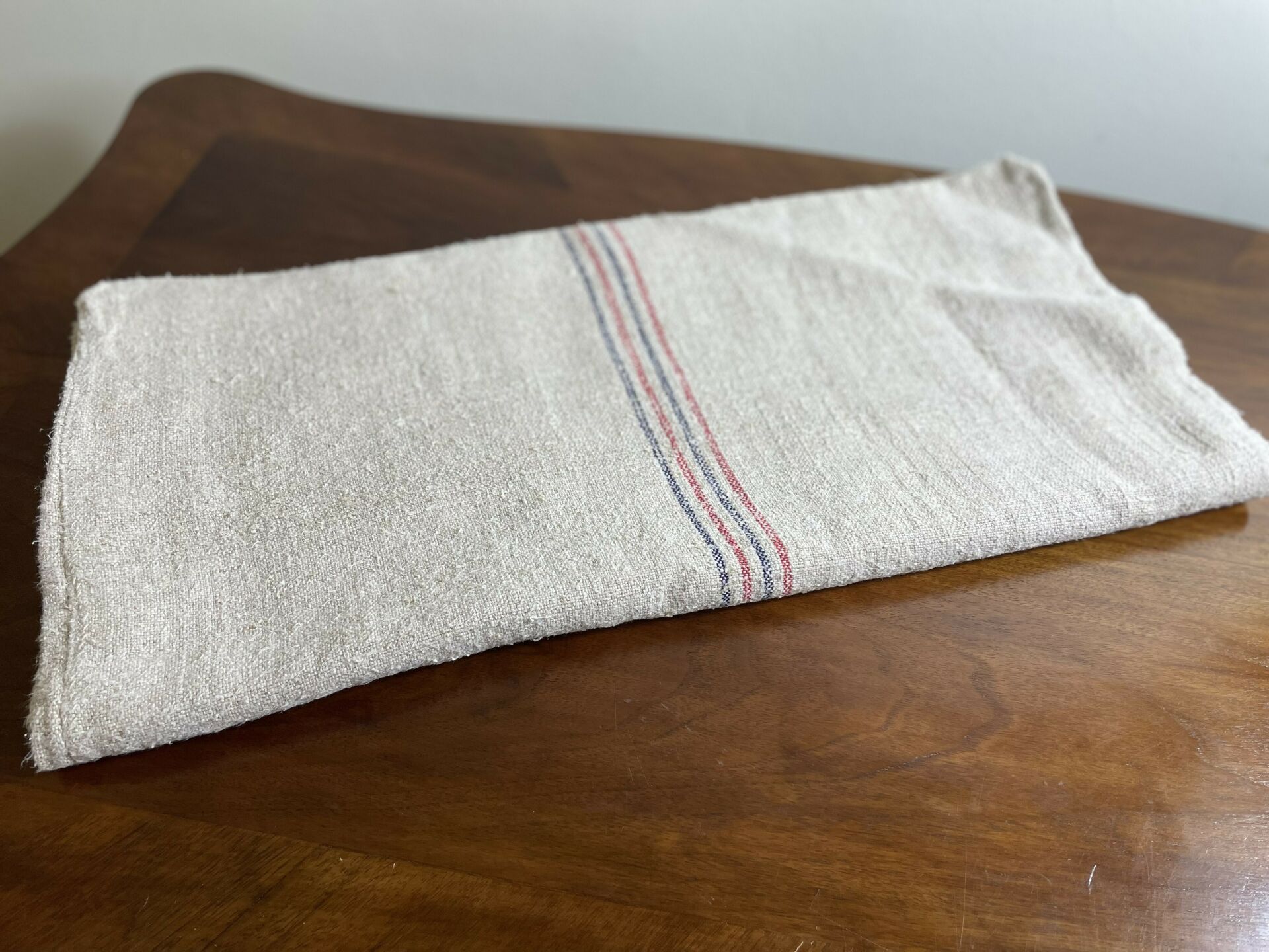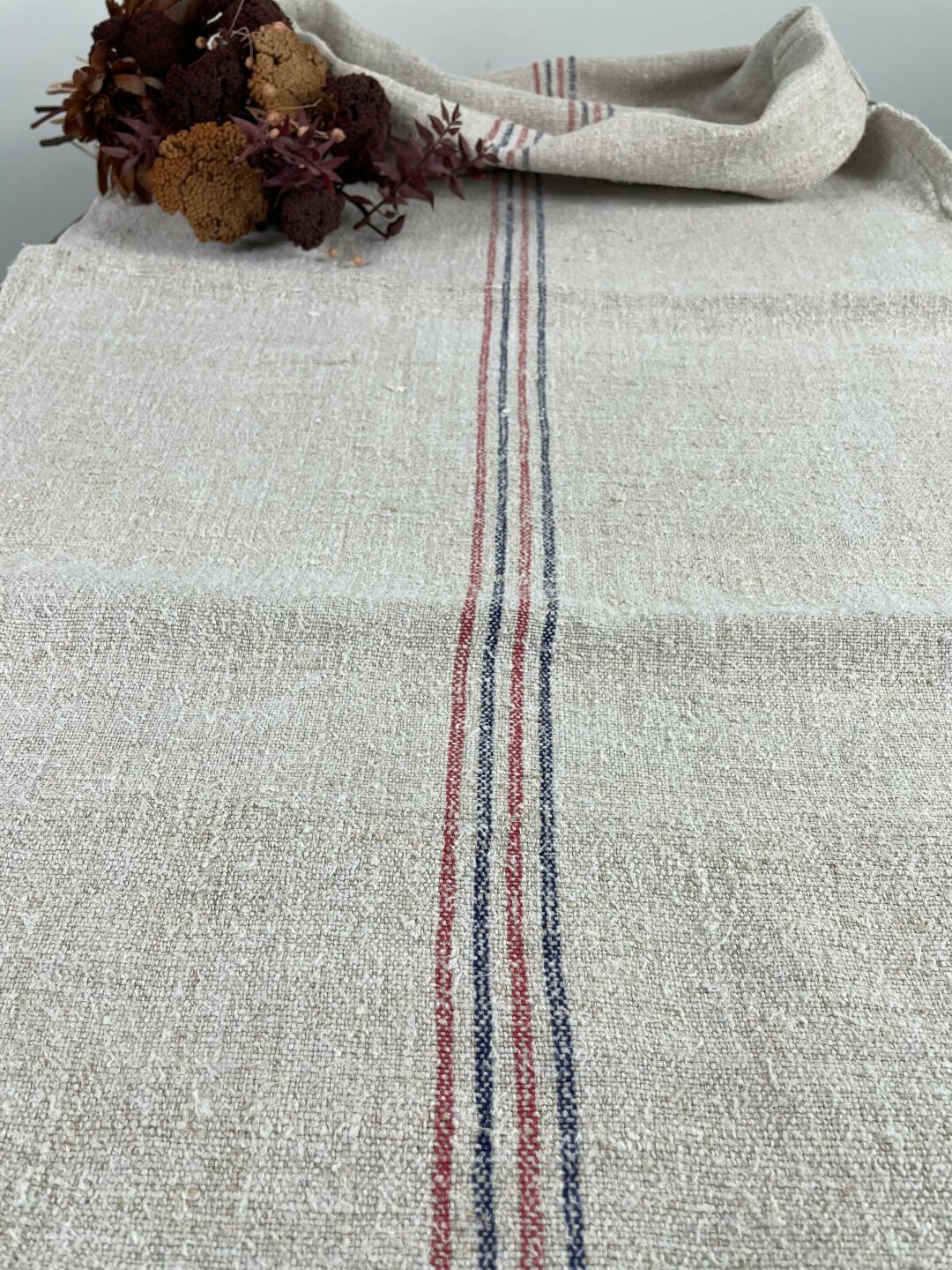 Autentikus, kézzel szőtt lenvászonból készült vintage len zsákunk minden helyiségnek rusztikus bájt ad. Tökéletes DIY lakáskultúra projektekhez, kárpitozáshoz vagy egyedi lenpárnahuzatok készítéséhez.